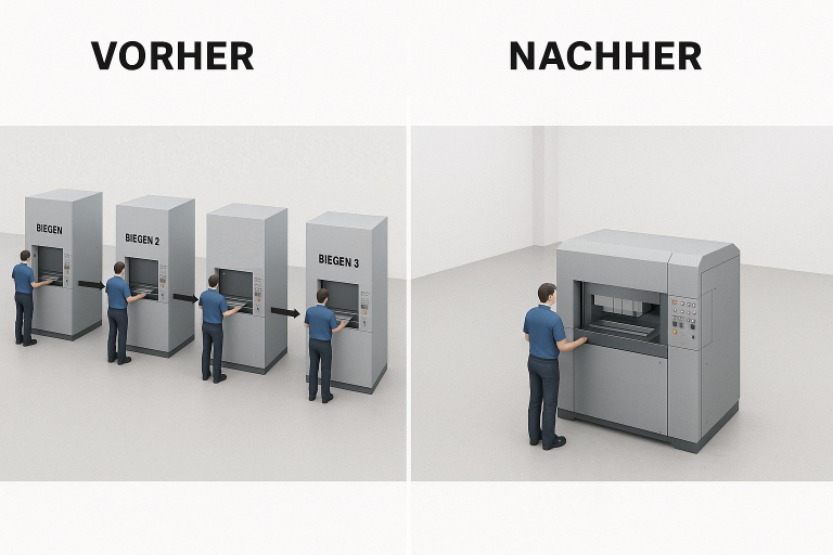 Wer seine Abläufe effizienter gestalten möchte, muss nicht immer in neue Gebäude oder Maschinen investieren. Oft reicht es, Arbeitsschritte zu verknüpfen und den Bauraum gezielt zu komprimieren.